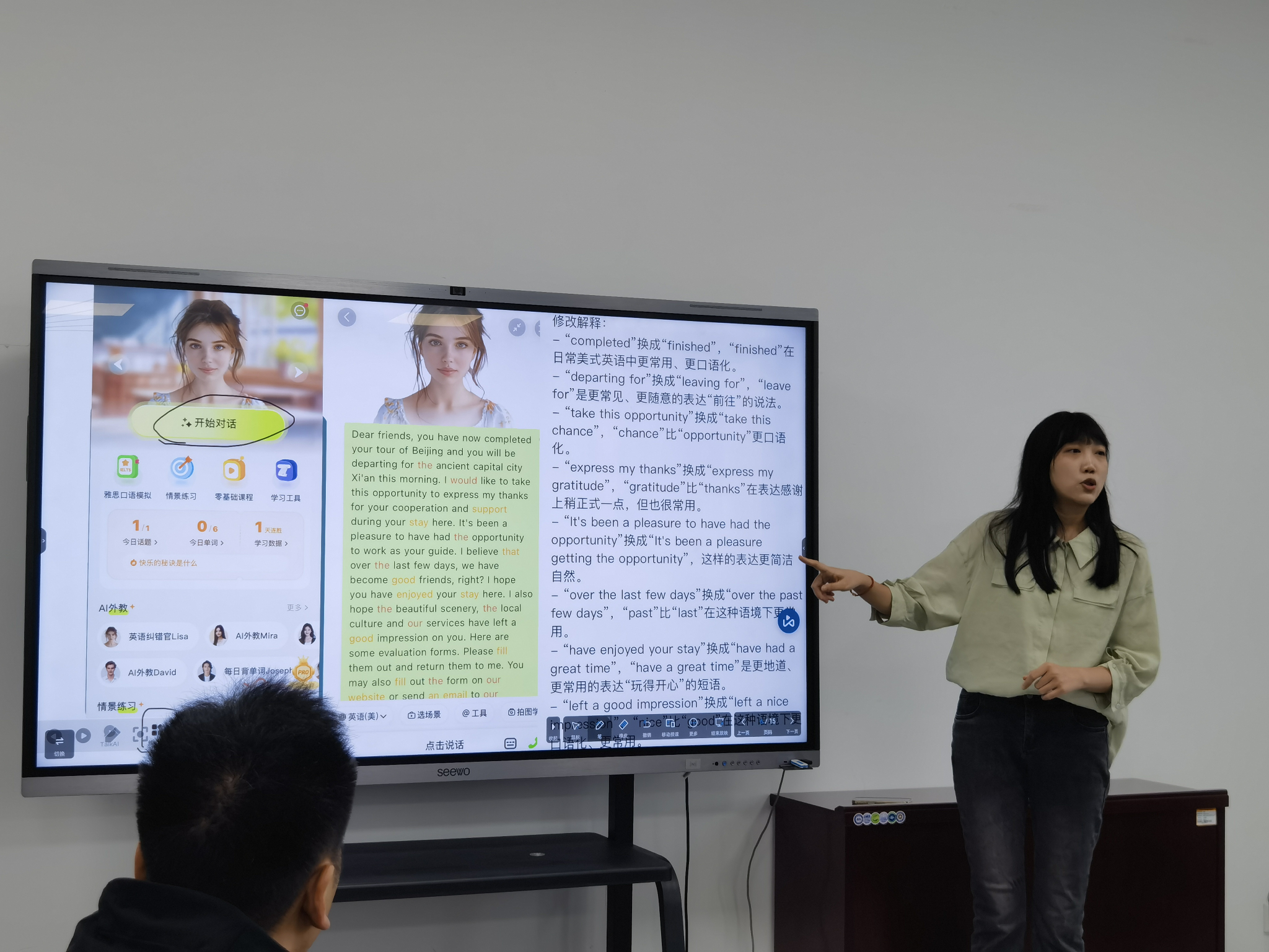 杜雨蒙老师以“人工智能背景下的旅游英语虚拟实训教学改革与实践探索”为主题,介绍了其团队构建的“3355”旅游英语实践教学模式。该模式通过AI技术搭建沉浸式语言实训环境,实现实时评测与动态行业信息更新,有效解决了传统教学中场景真实性不足、资源滞后等问题。