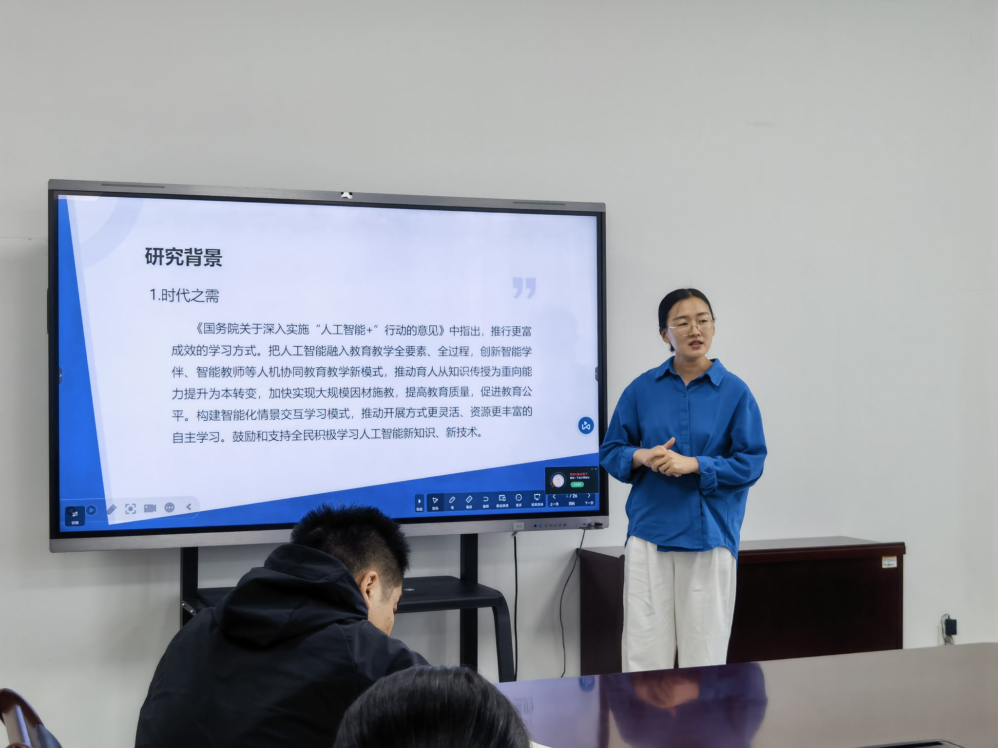 吕远、杜雨蒙两位老师分别就其主持的人工智能教改项目进行了汇报。学院全体教师和学生代表参会。