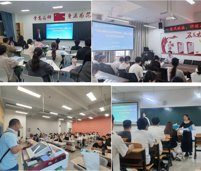 学科教学(地理)专业硕士研究生是我院2026年首次招生的新专业。为做好招生工作、吸引优质生源,9月份,我院赴省内多所高校开展集中宣传活动,相关工作已取得阶段性成效。