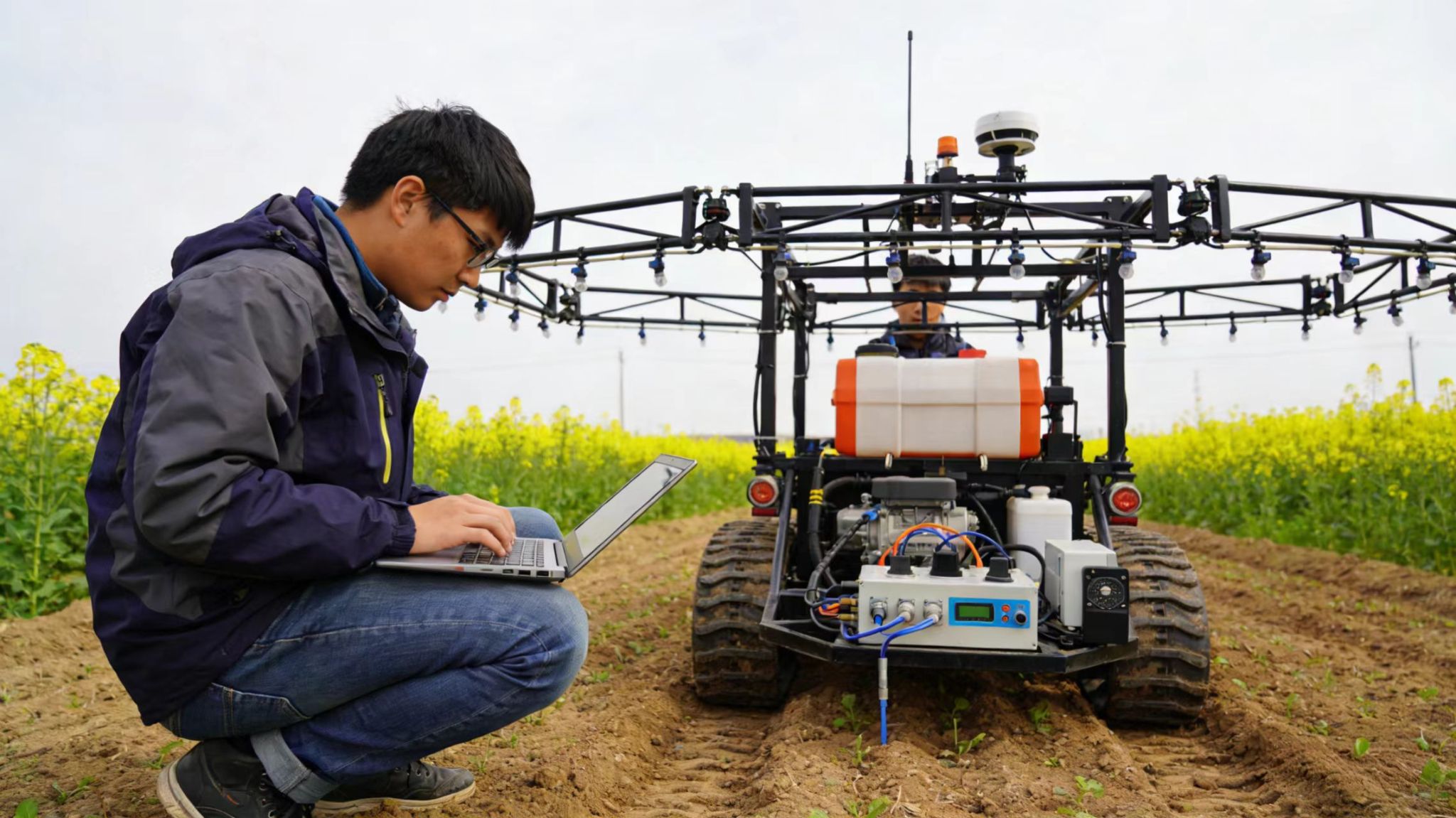 田间地头是劳动教育的天然课堂。学院打造的“我在药大有片田”特色项目,让学生以“包田到班、分组管护”的模式,全程参与金丝皇菊的选种、育苗、采摘与炮制。从春日植艾制香囊,到深秋采菊做茶包,四季流转间构建起“四时本草”劳动育人体系,学生们在躬身劳作中读懂药用植物专业知识,更通过校地帮扶项目感知乡村振兴的时代使命。平顶山学院的学子则带着“黑科技”走进试验田,农业机械化工程专业研究生操控桁架扫描式采集平台,为140多个油菜品种精准收集数据;机械设计专业学生研发的无人驾驶施肥系统,让肥料精准送达物根系,在解决农业生产实际问题中,实现了工科思维与农业实践的深度融合。